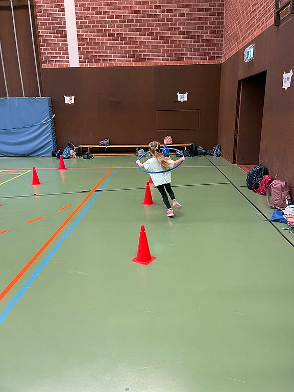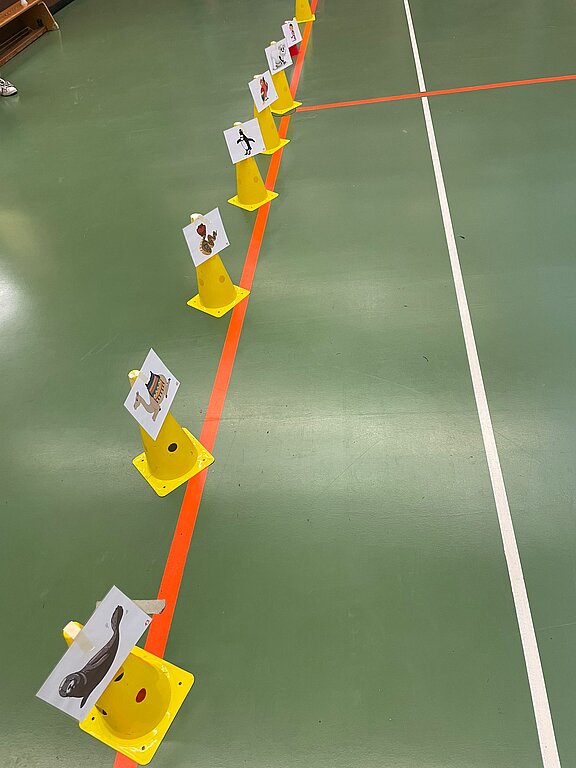 Es wurden 20 gemischte Gruppen gebildet, die nach Tieren benannt wurden, um sich in der großen Halle gut orientieren zu können. Jede Gruppe wurde von zwei Kindern aus Jahrgang 4 betreut, die sich sehr aufmerksam und liebevoll kümmerten. An 10 Stationen konnten sie sich sportlich betätigen und ein wenig wetteifern, denn an jeder Station traten immer 2 Gruppen gegeneinander an und sammelten Punkte. Alle Kinder waren motiviert dabei und hatten viel Spaß an Stationen wie Autorennen, Puzzlestaffel, Hürdenstaffel, Sackhüpfen oder Kartoffellauf. Zwischenzeitlich gab es eine gemeinsame Frühstückspause. Auch die Eltern, die die Stationen sehr engagiert mit großem Einsatz betreuten, konnten sich in der Cafeteria ein wenig stärken. An dieser Stelle möchten wir uns auch bei den Eltern von Jahrgang 1 für die Kuchenspenden bedanken und bei unserer Kollegin Frau Kunze, die sich bereits frühmorgens um die Kaffeeversorgung kümmerte!