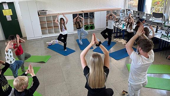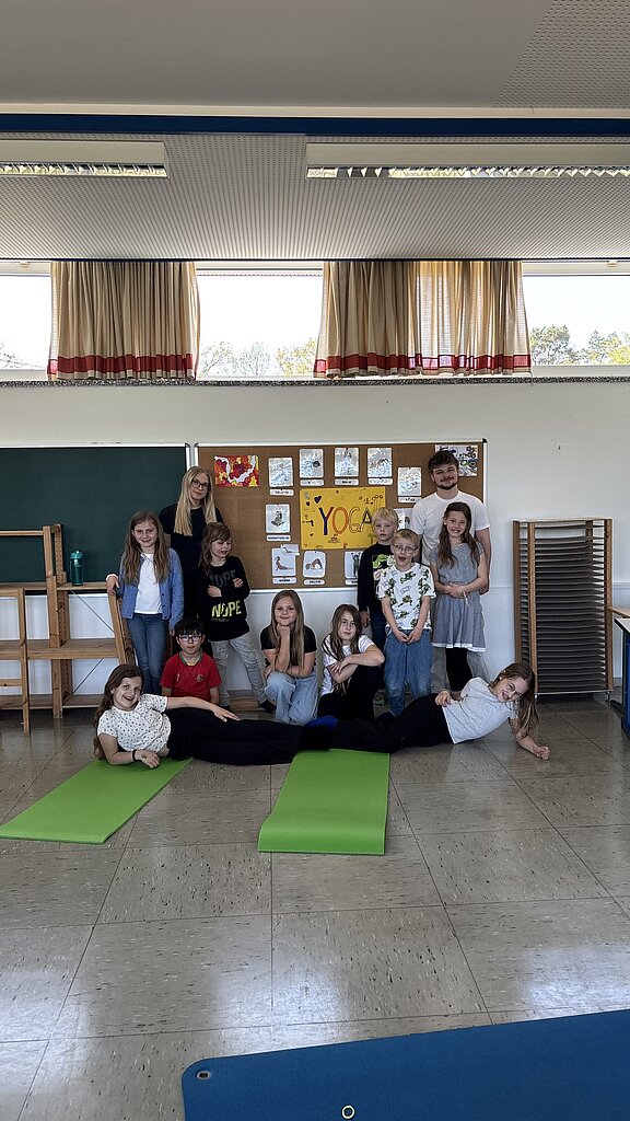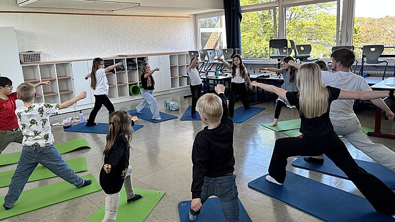 Im Rahmen unseres Ganztagsangebots haben die Schülerinnen und Schüler der Grundschule die Möglichkeit, an einer Yoga-AG teilzunehmen. Dieses besondere Angebot verbindet Bewegung, Konzentration und Entspannung auf spielerische Weise und erfreut sich großer Beliebtheit.