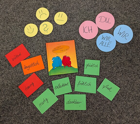 Die Kinder setzten sich zunächst damit auseinander, welche Gefühle im Streit entstehen können. Sie sammelten Begriffe wie Wut, Traurigkeit, Enttäuschung oder auch das Gefühl, ängstlich zu sein. In kleinen Gesprächsrunden und Spielen wurde deutlich, dass jeder Streit anders erlebt wird und dass es wichtig ist, die eigenen Gefühle wahrzunehmen und auszudrücken.