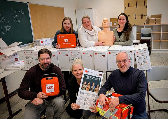 12 Reanimationspuppen: Diese ermöglichen es uns, die Herzdruckmassage praxisnah zu üben – nicht nur im Kollegium, sondern zukünftig auch mit unseren Schülerinnen und Schülern.