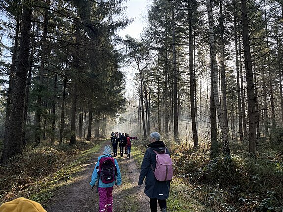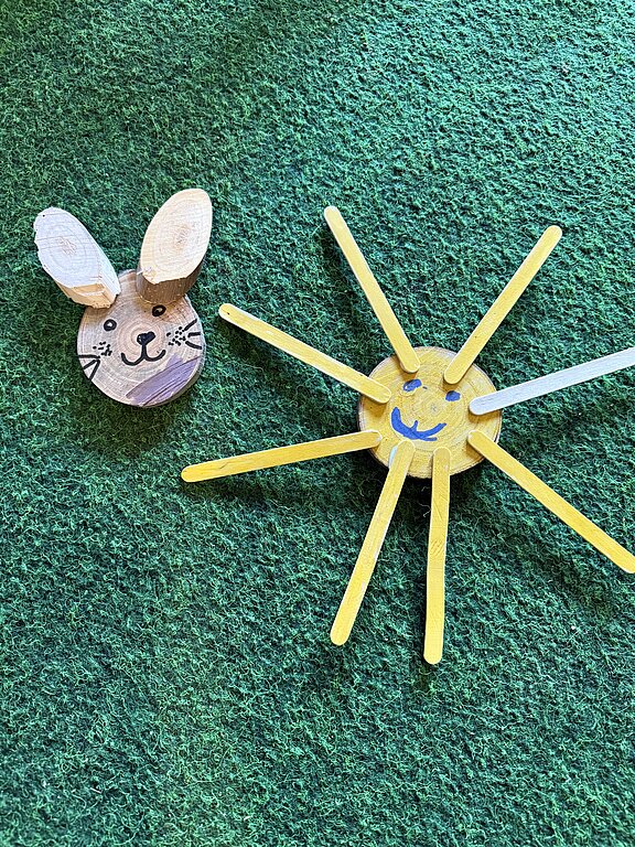 Im sonnigen März durfte der dritte Jahrgang seinen diesjährigen Waldtag erleben. Schon der gemeinsame Weg zum Waldhaus war Teil des Programms. Unter der Anleitung unserer Schulsozialpädagogin Katja übten die Kinder, aufeinander zu achten, sich gegenseitig zu unterstützen und aufmerksam mit sich selbst, den anderen und der Natur umzugehen. Der Spaziergang durch den Wald bot dabei viele kleine Gelegenheiten, die Umgebung bewusst wahrzunehmen und als Gruppe zusammenzuwachsen. Am Waldhaus angekommen, wartete bereits das nächste Highlight auf die Kinder: die Kreativwerkstatt in der Natur. Mit großer Begeisterung, viel Neugier und handwerklichem Geschick wurde gehämmert, gesägt, gebohrt und geschnitzt. Unter der fachkundigen Anleitung der Waldpädagogin Kerstin sowie mit der tatkräftigen Unterstützung von Katja konnten die Kinder ihrer Kreativität freien Lauf lassen und verschiedene Naturmaterialien in kleine Kunstwerke verwandeln. Dabei entstanden viele tolle und ganz individuelle Werkstücke. Von fantasievollen Stockmännchen über selbst gebaute Pfeil und Bogen bis hin zu bunt verzierten Ästen und liebevoll gestalteten Osterbasteleien. Neben Kreativität waren auch Präzision, Geduld und Achtsamkeit gefragt, besonders im Umgang mit den Werkzeugen – und natürlich mit den eigenen Fingern. Am Ende des Tages blickten alle auf einen erlebnisreichen Tag in der Natur zurück, der nicht nur viel Spaß gemacht, sondern auch neue Erfahrungen ermöglicht und schöne gemeinsame Erinnerungen geschaffen hat. Ein herzliches Dankeschön geht an Kerstin und Katja für die tolle Anleitung, ihre Geduld und die großartige Unterstützung!