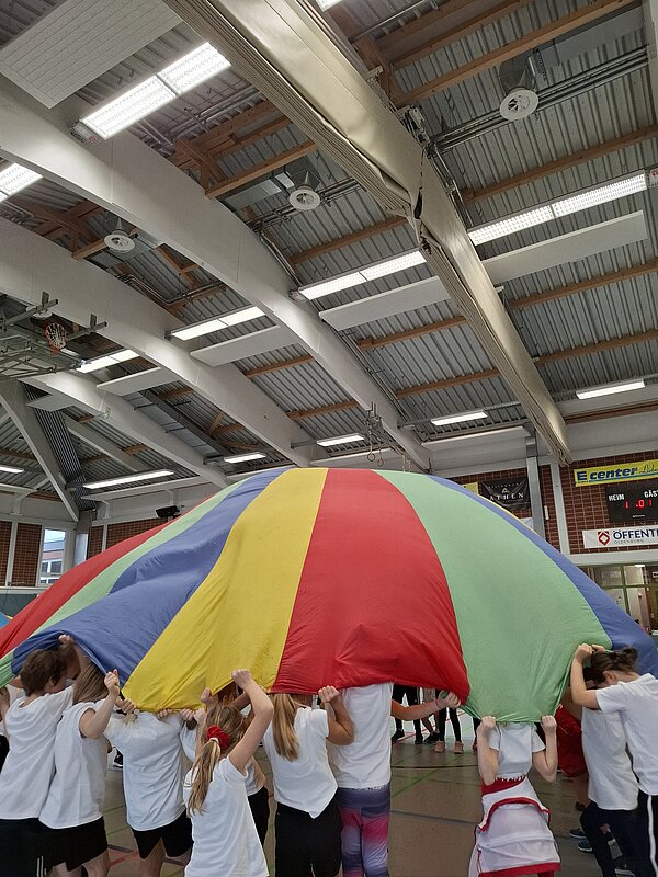 Gemeinsam mit Kindern anderer Grundschulen tobten sie durch die Halle und waren ständig in Bewegung. Ob beim kleinen Handballturnier, auf Rollbrettern oder an den vielen abwechslungsreichen Spielstationen – überall wurde gelacht, angefeuert, mitgefiebert oder zwischendurch eine kurze Bewegungs-Auszeit eingelegt.
