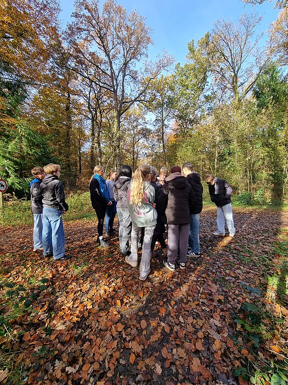 Ein wunderbarer Herbsttag mit Sonnenschein und buntem Laub bildete den perfekten Rahmen für ein besonderes Erlebnis des Jahrgangs 7 (Klassen 7a und 7b). Unter der Anleitung von Kerstin vom Waldhaus Wildenloh und Katja, unserer Sozialpädagogin, machten sich die Schülerinnen und Schüler auf in den nahegelegenen Wald Wildenloh, um dort das Teamspiel „Capture the Flag“ zu spielen. Das Spiel lebt von Strategie, Teamgeist, Absprachen und kreativen Ideen – und genau das zeigten die Schülerinnen und Schüler mit großen Engagement. Faires Spiel und gutes Miteinander standen dabei im Vordergrund. Nach zwei spannenden Runden stand es 1:1, woraufhin die Klassen beschlossen, ein drittes Spiel in Eigenregie zu organisieren. Dieses musste zwar nach etwa 45 Minuten aus Zeitgründen abgebrochen werden – aber vielleicht ergibt sich bald eine Gelegenheit zur Fortsetzung.
