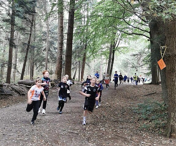 Nach einem gemeinsamen Aufwärmprogramm gingen die ersten Klassen an den Start. Eine Runde führte über 750 Meter durch den Wildenloh. Jede Gruppe lief 45 Minuten, bevor die nächsten Jahrgänge um 10:00 Uhr und um 11:00 Uhr folgten. Mit viel Motivation und Durchhaltevermögen drehten die Kinder ihre Runden und wurden dabei von vielen Helferinnen und Helfern kräftig angefeuert.