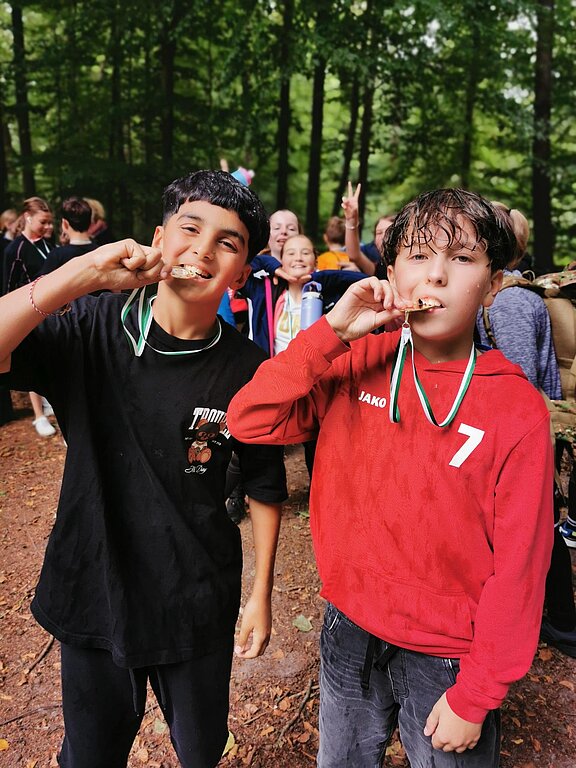 Im Anschluss an den Lauf wurden die Schülerinnen und Schüler in der Mensa mit Kuchen versorgt. Dieser war zuvor von zahlreichen Eltern gebacken und gespendet worden. Die Ausgabe übernahm der Profilkurs Gesundheit und Soziales des 10. Jahrgangs. Als kleine Erinnerung an ihre Leistung erhielt außerdem jede Läuferin und jeder Läufer eine Medaille.