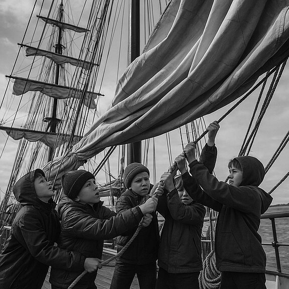 Besonders spannend war das Segel hissen: Ein einzelner schafft es niemals, die schweren Segel in die Höhe zu ziehen. Erst wenn alle gleichzeitig am Tau ziehen, kommt das Segel langsam nach oben. Dabei zählt Teamarbeit und Technik jeder Handgriff muss sitzen.